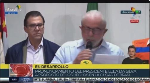 El mandatario progresista calificó de "barbarie" los graves altercados vividos hoy en la capital brasileña por parte de radicales de la extrema derecha que exigen una "intervención" militar que devuelva al poder al exgobernante Jair Bolsonaro, quien se encuentra en Estados Unidos.